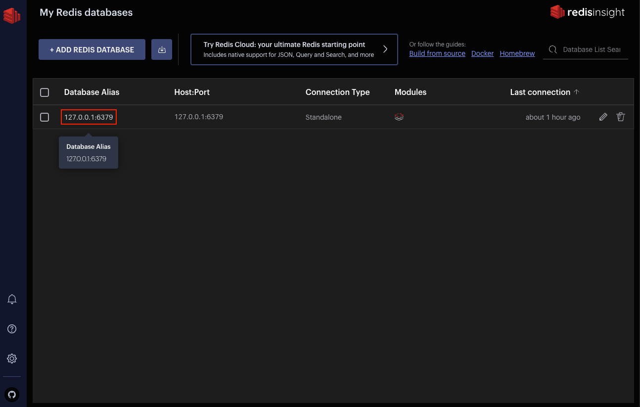 Open the Redis Insight application, and connect to your database by clicking on its database alias.