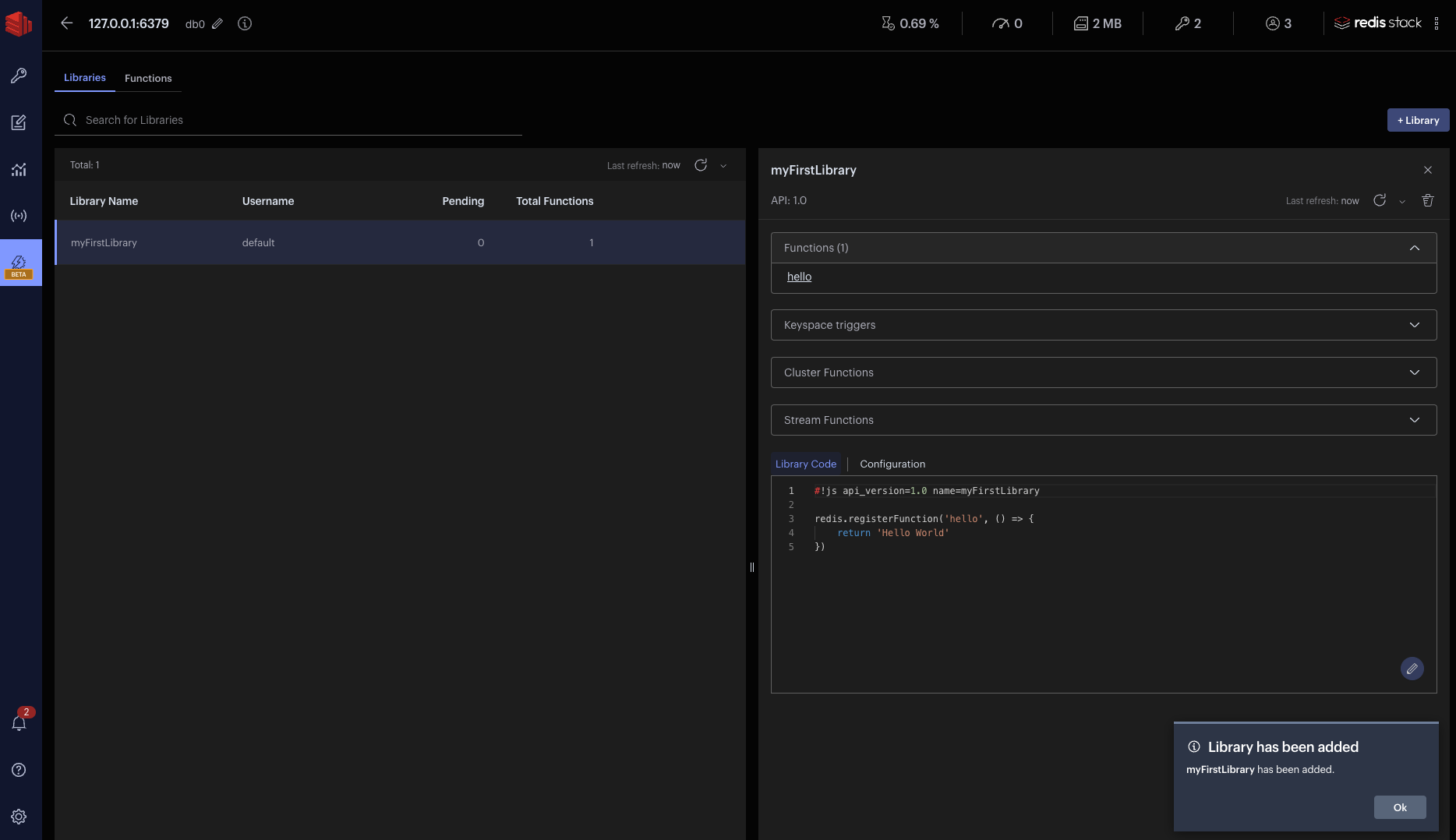 Get started with triggers and functions using Redis Insight