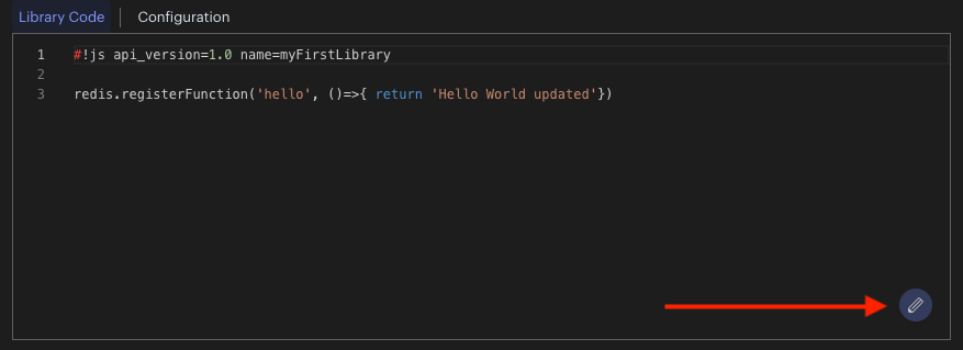 To update a library you can edit the library code directly in the interface by clicking on the edit (pencil) icon. When you save your changes, the libary will be reloaded.