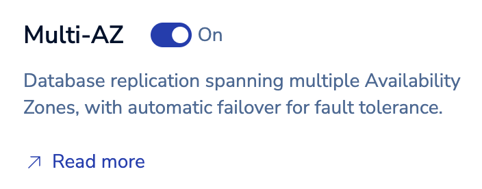 In the Advanced options section, select Multi-AZ to ensure high-availability.