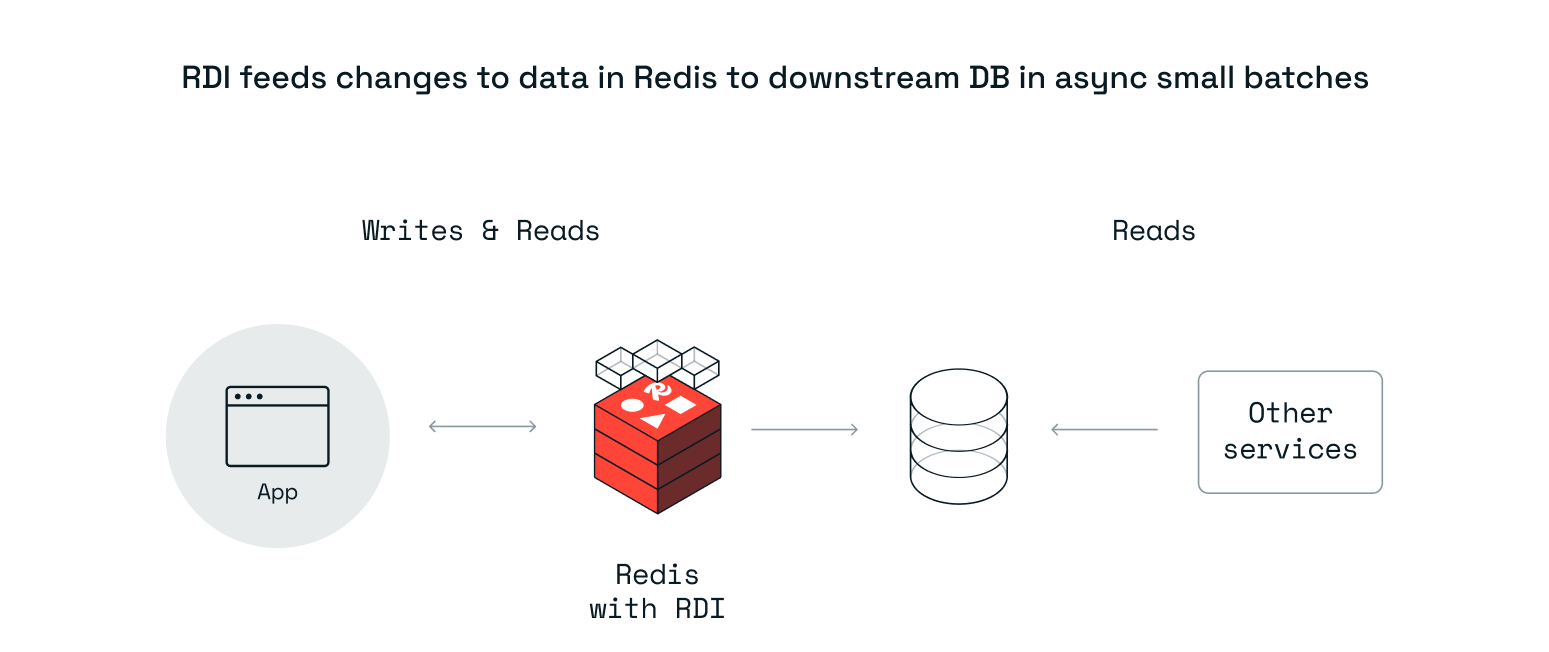 - Write-behind scenario (Preview). RDI applies data changes in Redis to one or more downstream data stores. RDI can map and transform Redis types and models to downstream types and models. This scenario is useful when the application needs fast writes and reads for some of the queries, but has to provide data to other downstream services that need them in different models for other uses.