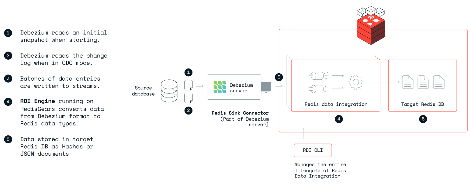 Debezium Server has a Redis sink that writes data and state to RDI streams. RDI also works with Arcion, a commercial CDC that provides an additional set of sources.