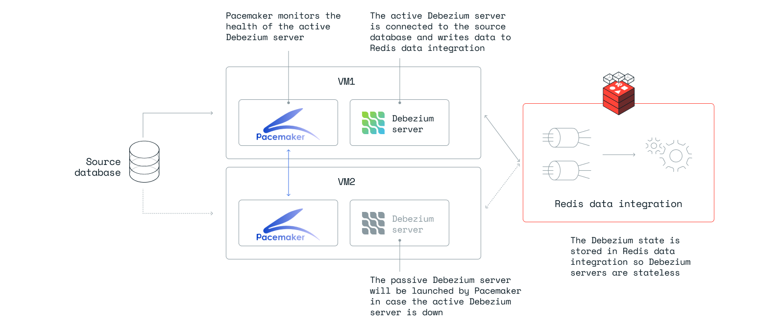 This document will guide you through the steps required to deploy a three-node, active/passive cluster of Debezium Server VMs using Pacemaker.