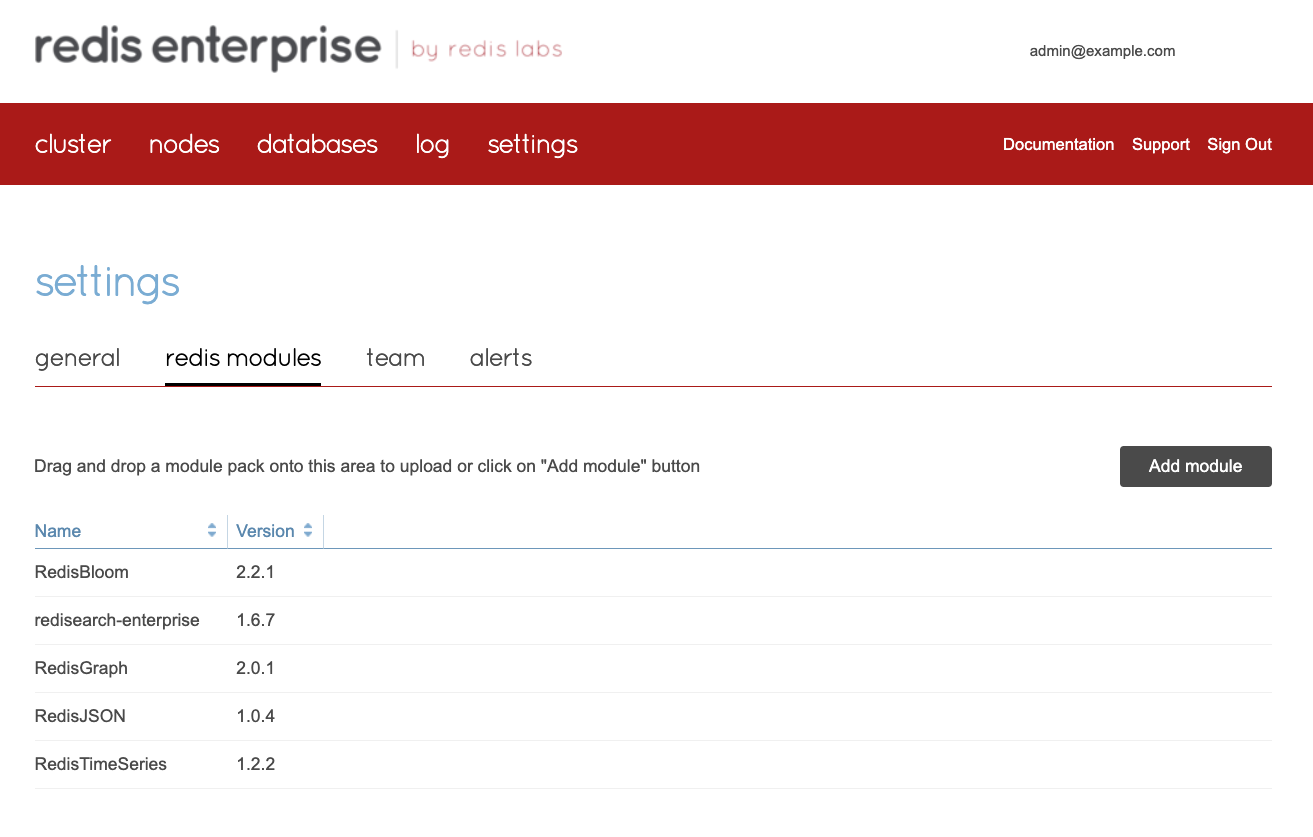 Sign in to the admin console of the Redis Enterprise cluster where you want to host the new RediSearch 2.x database.
