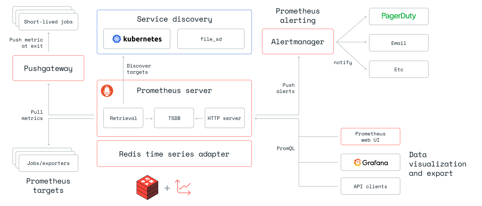 Redis Stack comes with several integrations into existing time series tools. One such integration is our RedisTimeSeries adapter for Prometheus, which keeps all your monitoring metrics inside time series while leveraging the entire Prometheus ecosystem.