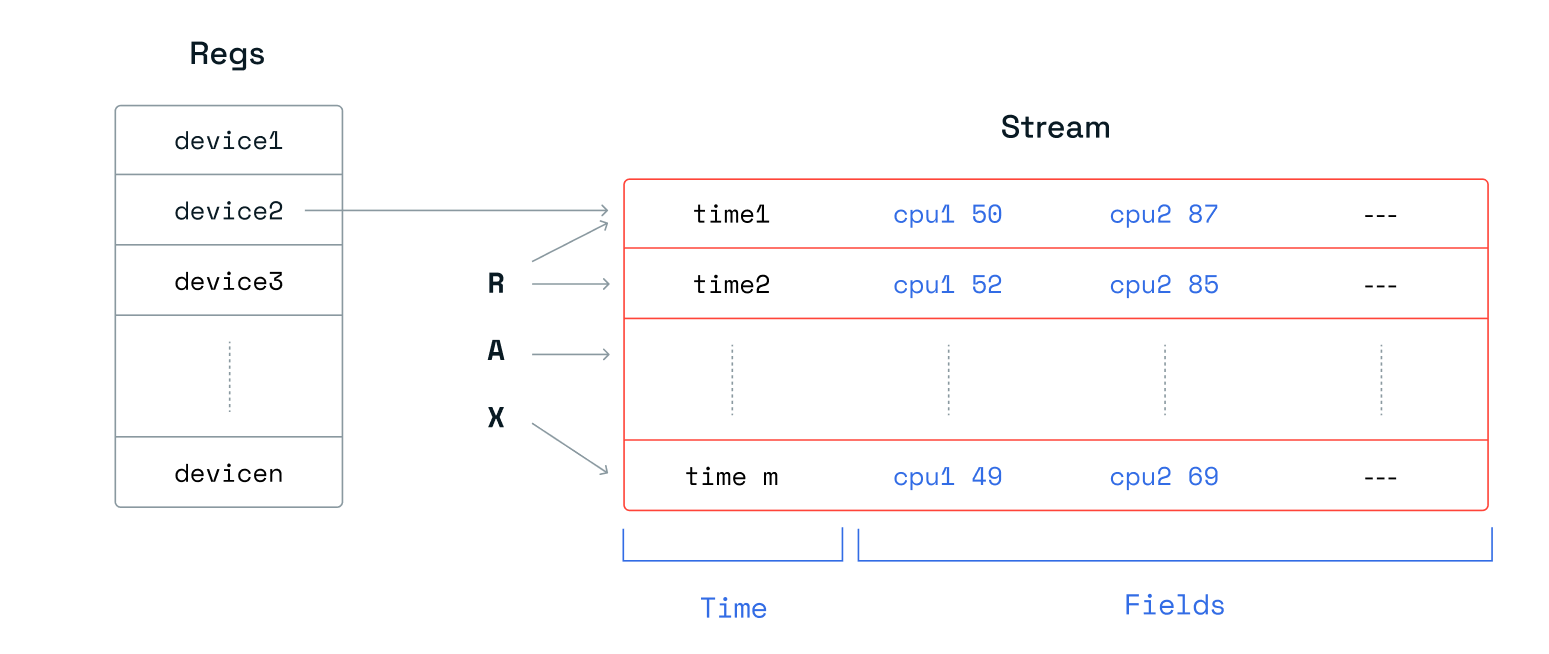 | Redis streams | Time series | Sorted set per device |