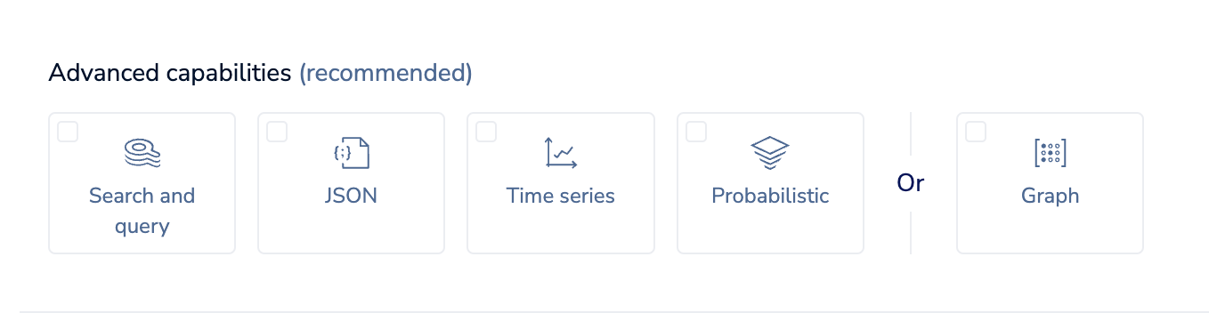 Redis Cloud Pro lets you choose advanced capabilities for each database.