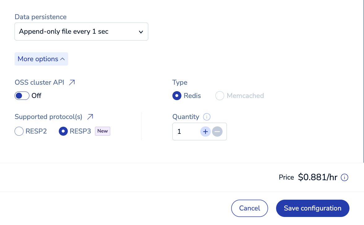 | Supported Protocol(s) | Choose between RESP2 and RESP3 (Redis 7.2 only). See Redis serialization protocol for details |