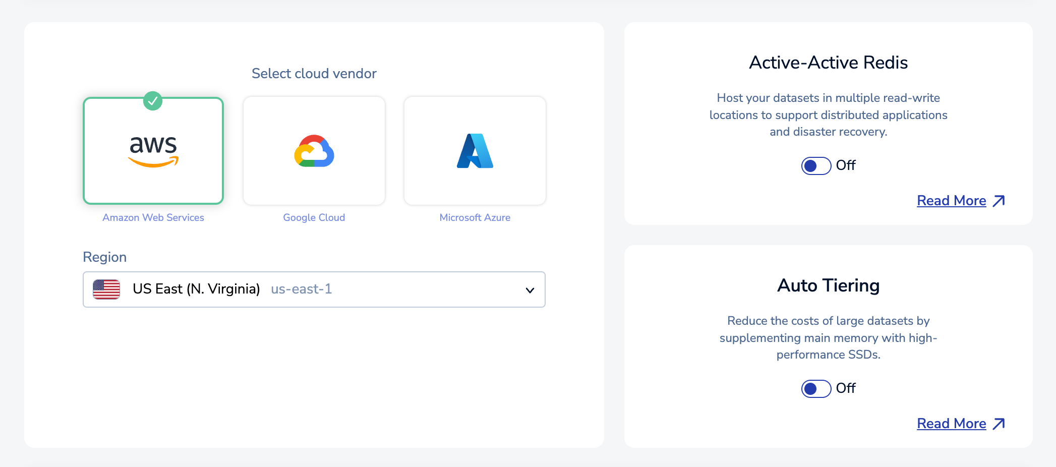 | Auto Tiering | Determines if your databases are stored only in memory (RAM) or are split between memory and Flash storage (RAM+Flash). See Auto Tiering |