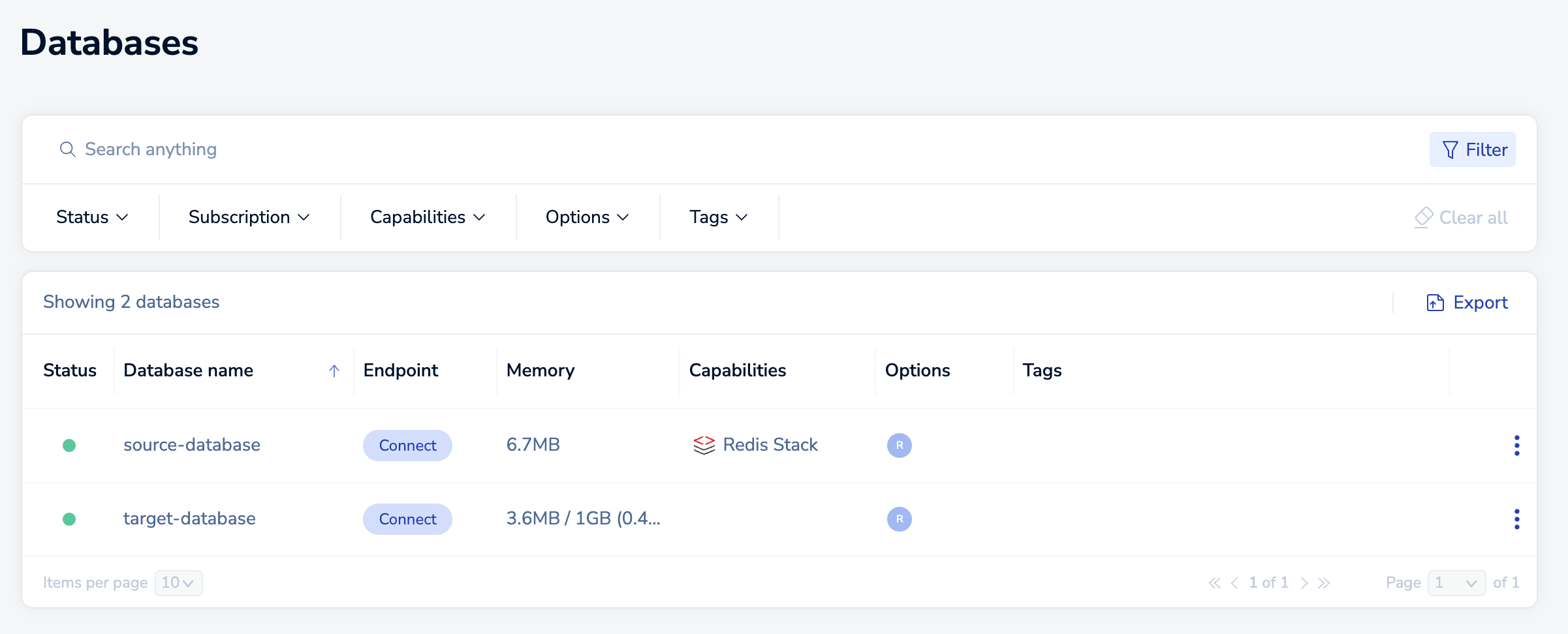 Select Databases from the Redis Cloud console menu and select the target database in the list.