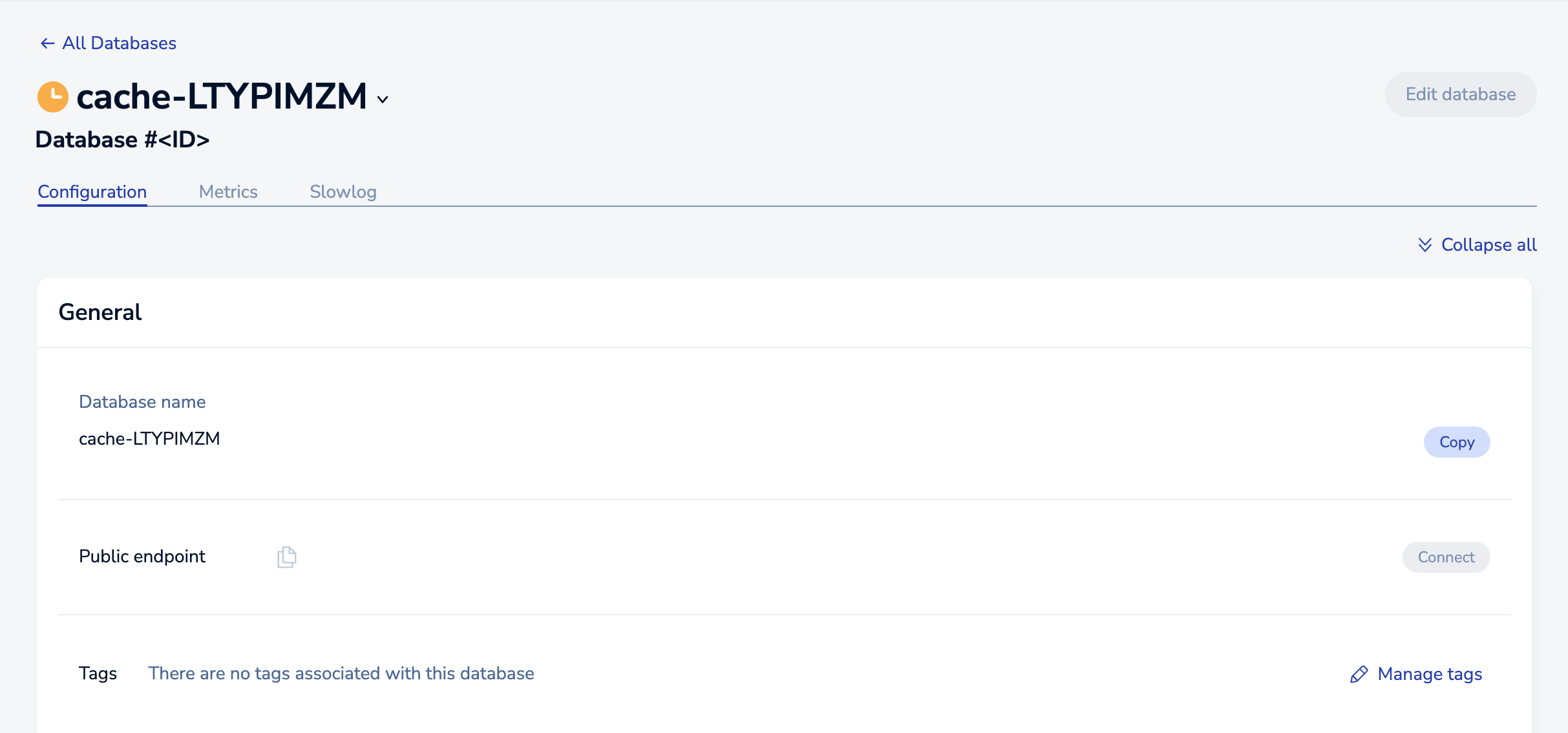 In the upper corner, an icon shows the current status of the database. If the icon shows an orange clock, this means your database is still being created and its status is pending.