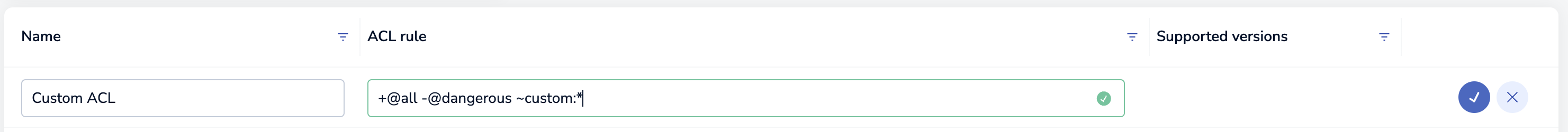 Select the check mark to save your changes. Your new Redis ACL should appear in the list.
