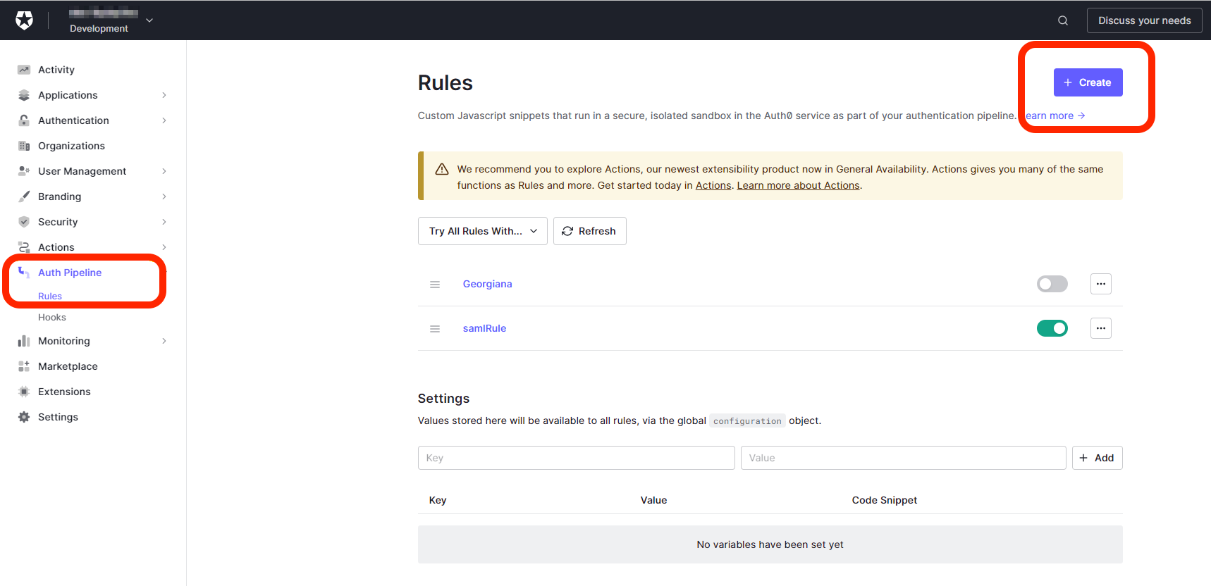 Open Auth Pipeline > Rules and select Create.