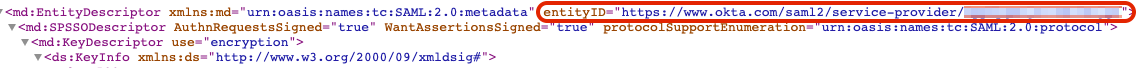 - EntityID: The unique name of the service provider (SP)