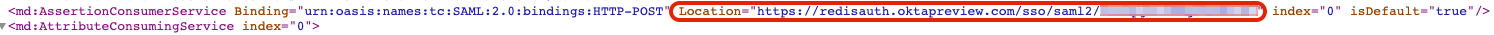 ID so it matches the AssertionConsumerService Location URL ID (the content after the last forward slash "/"). To learn more about how to configure service provider apps, see your identity provider’s documentation.Step 4: Return to the Redis Cloud console