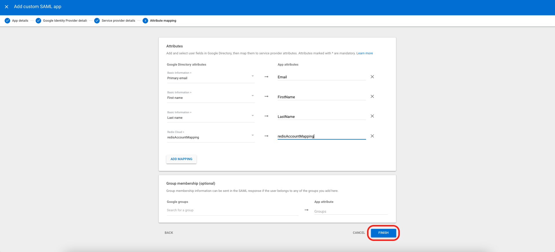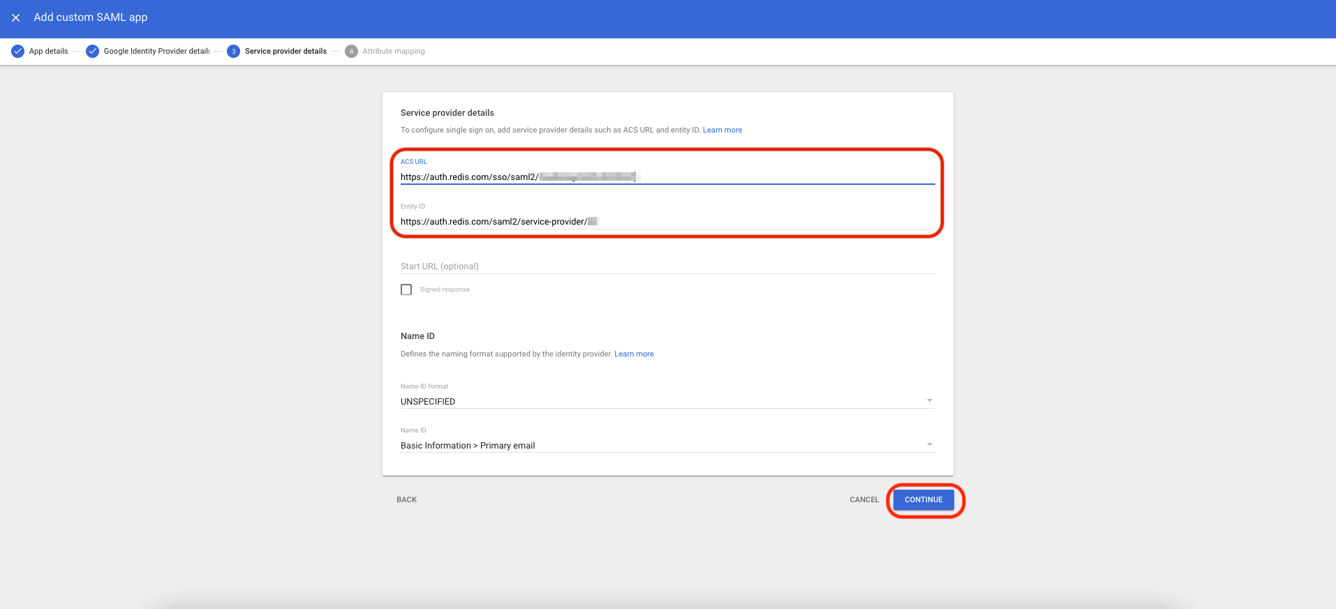 Step 4: Finish SAML configuration in Google Workspace's Redis Cloud Application