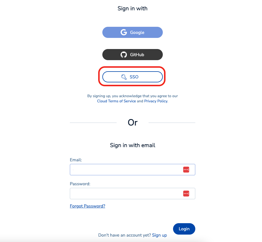 To activate SAML, you must have a local user (or social sign-on user) with the owner role. If you have the correct permissions, you will see the Single Sign-On tab.