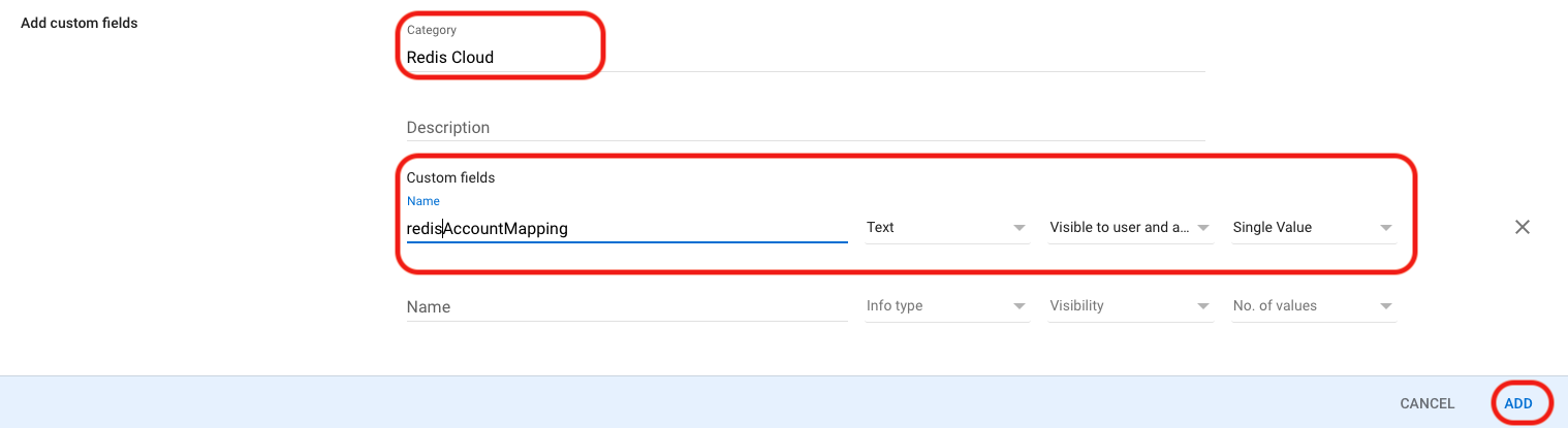 Once complete, select Add. The summary page now displays the new redisAccountMapping custom field.