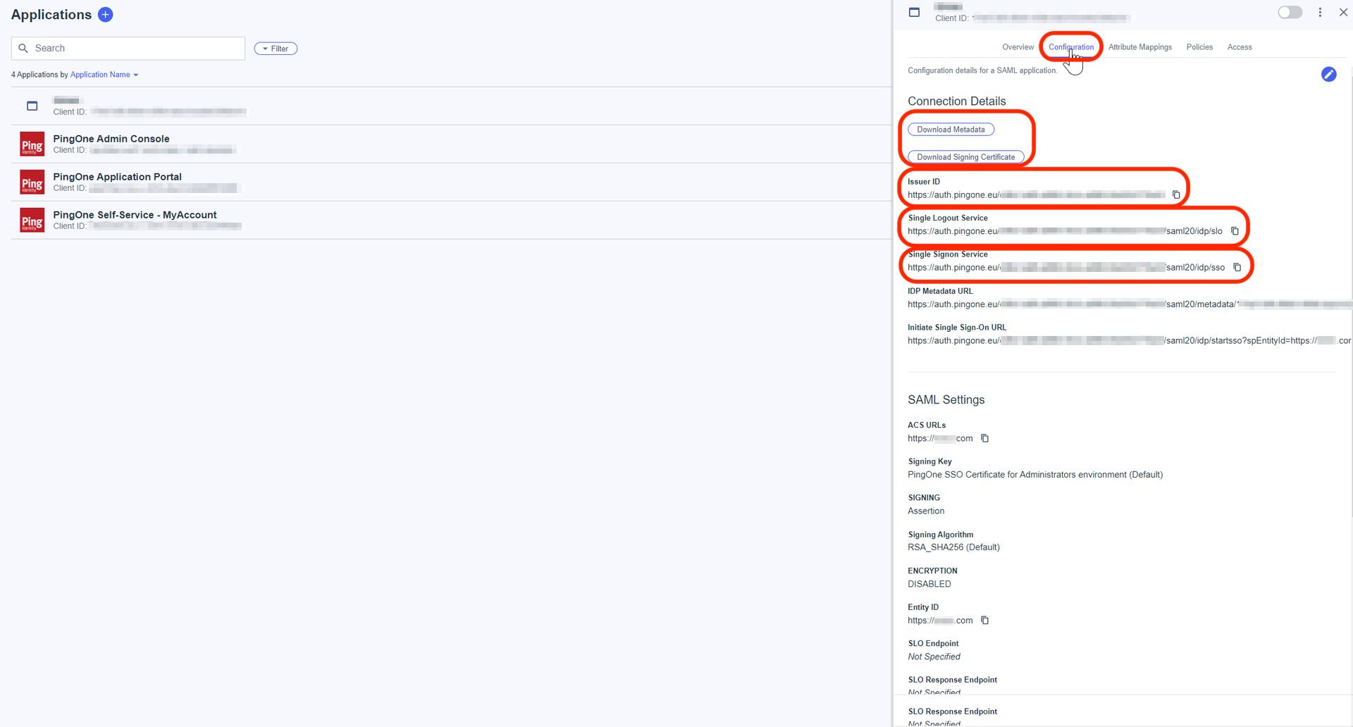 In Ping Identity, go to Administrators > Connections > Applications and select your application name. Select the Configuration tab and select Edit.