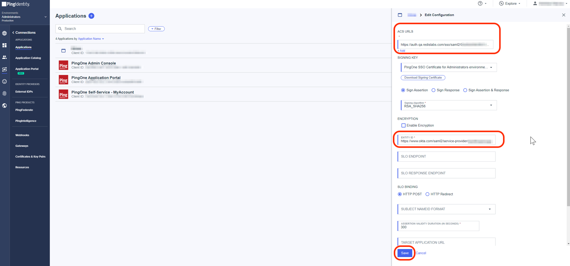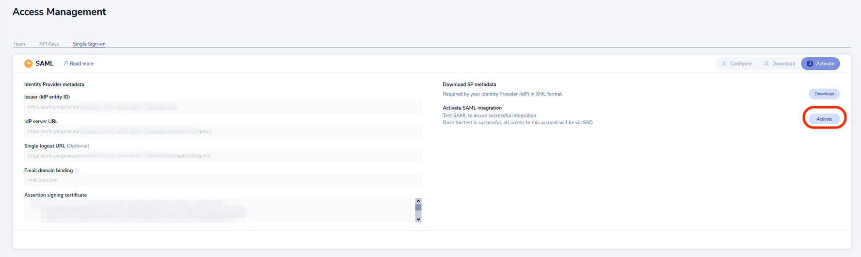 Now that we have our Ping Identity IdP server ready, we need to configure support for SAML in Redis Cloud.