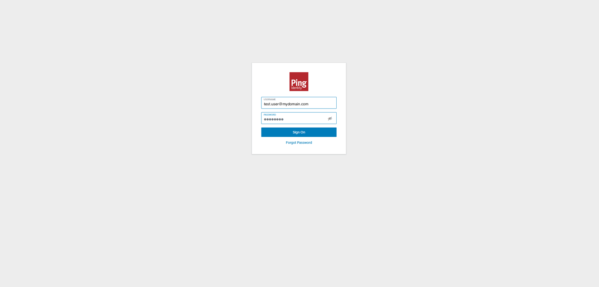 The Ping Federate login screen will appear. Enter the credentials and select Sign In.