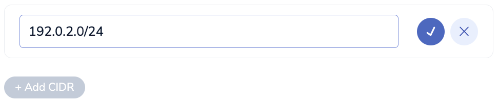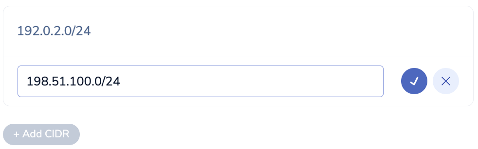 Enter the first IP address (in CIDR format) you want to allow in the text box and then select the check mark to add it to the allow list: