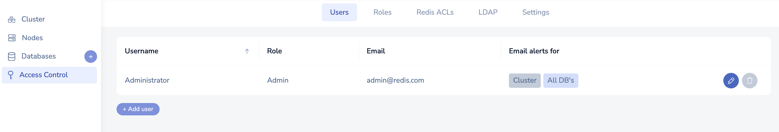 Access Control List - You can specify the user roles that have access to the database and the Redis ACLs that apply to those connections.