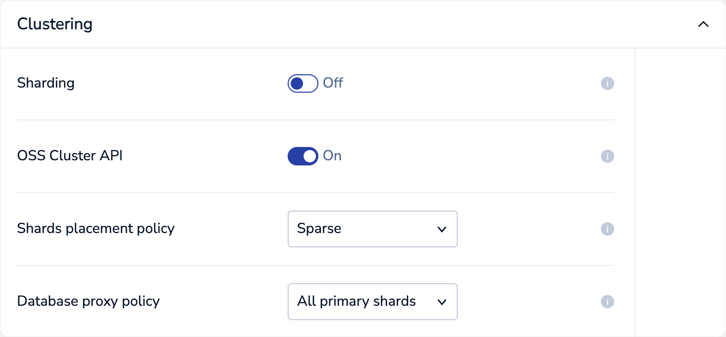 The Redis Cluster API setting applies to individual databases instead of the entire cluster.