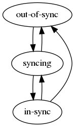 | 'in-sync' | Sync process finished successfully, and new commands are syncing on a regular basis | 'syncing' 'out-of-sync' |