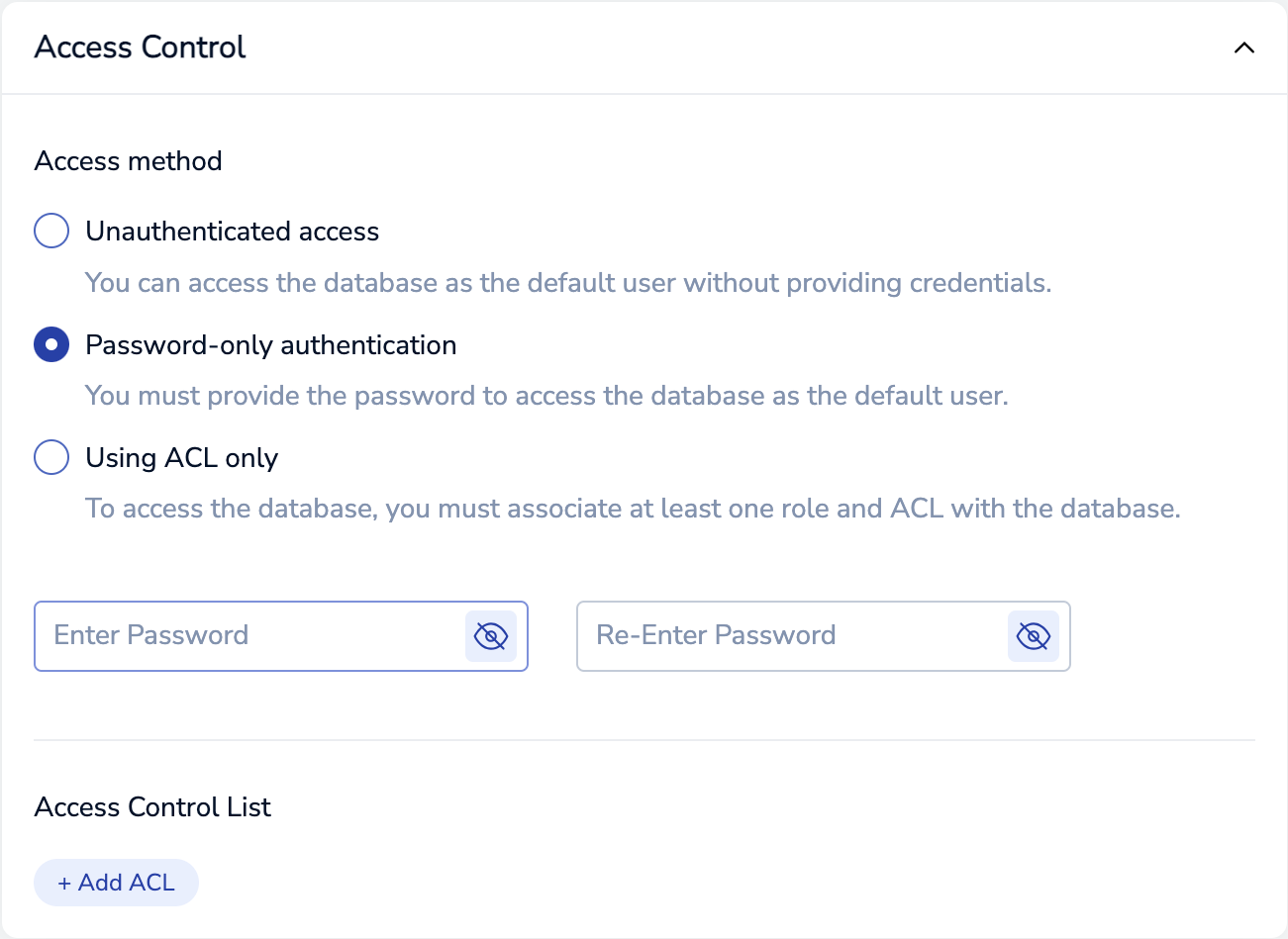 In the Access Control section, select Password-only authentication as the Access method.